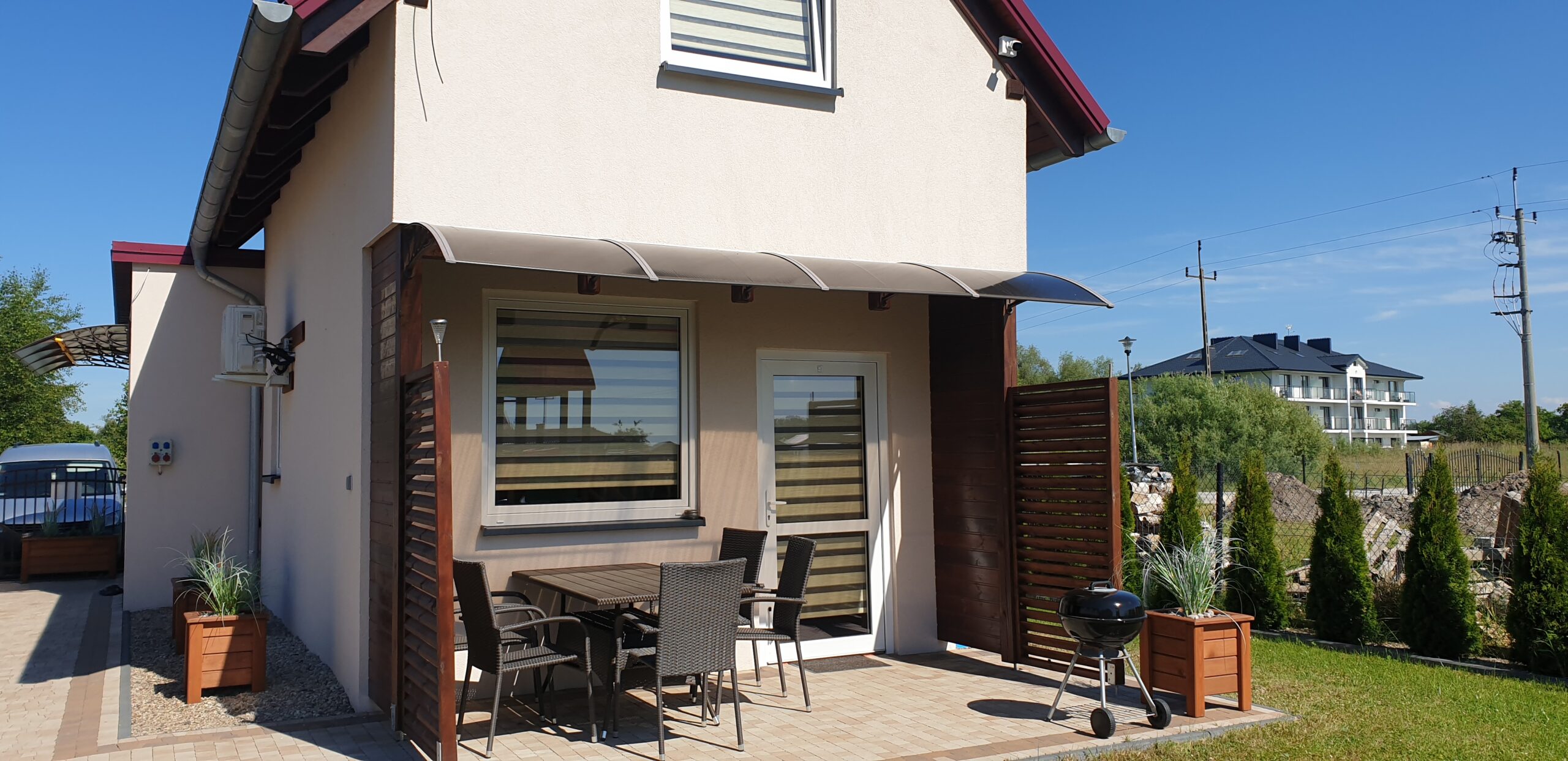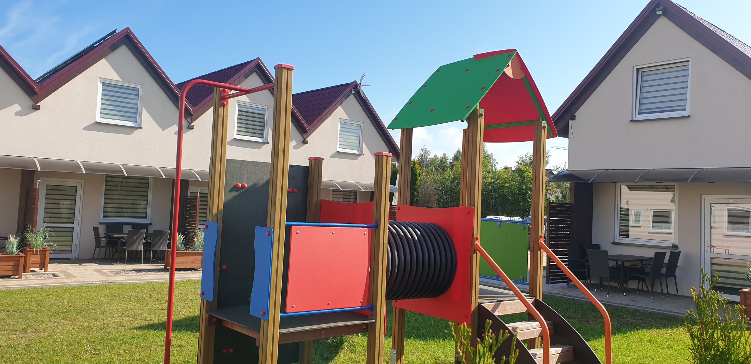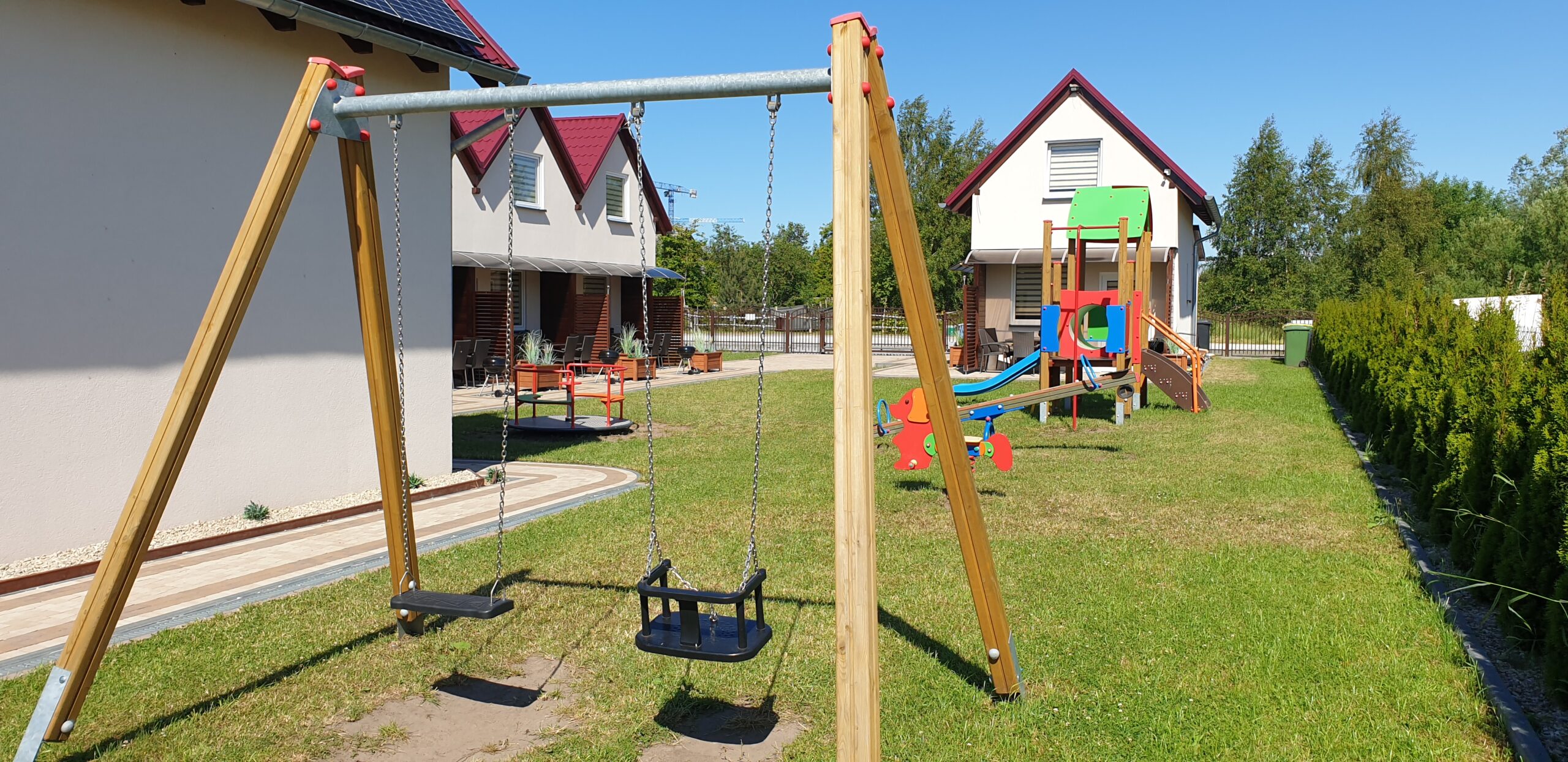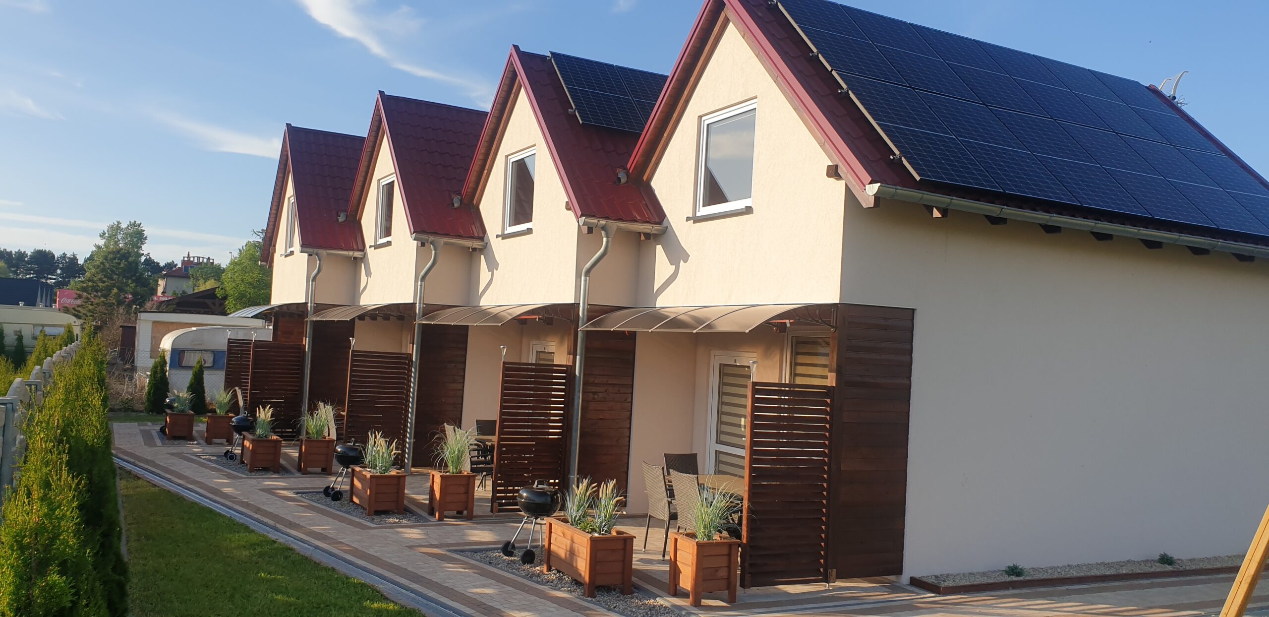 Zobacz, jak wygląda Nautica od środka i z zewnątrz. W galerii znajdziesz zdjęcia domków, zadaszonych tarasów z grillami, placu zabaw oraz okolicy — szerokiej plaży (250 m), latarni morskiej i nadmorskiego szlaku rowerowego. Kliknij zdjęcie, aby powiększyć.
