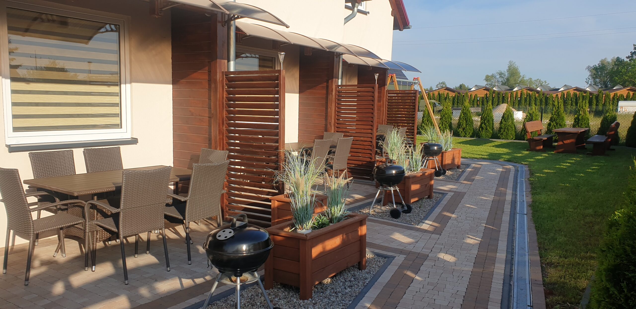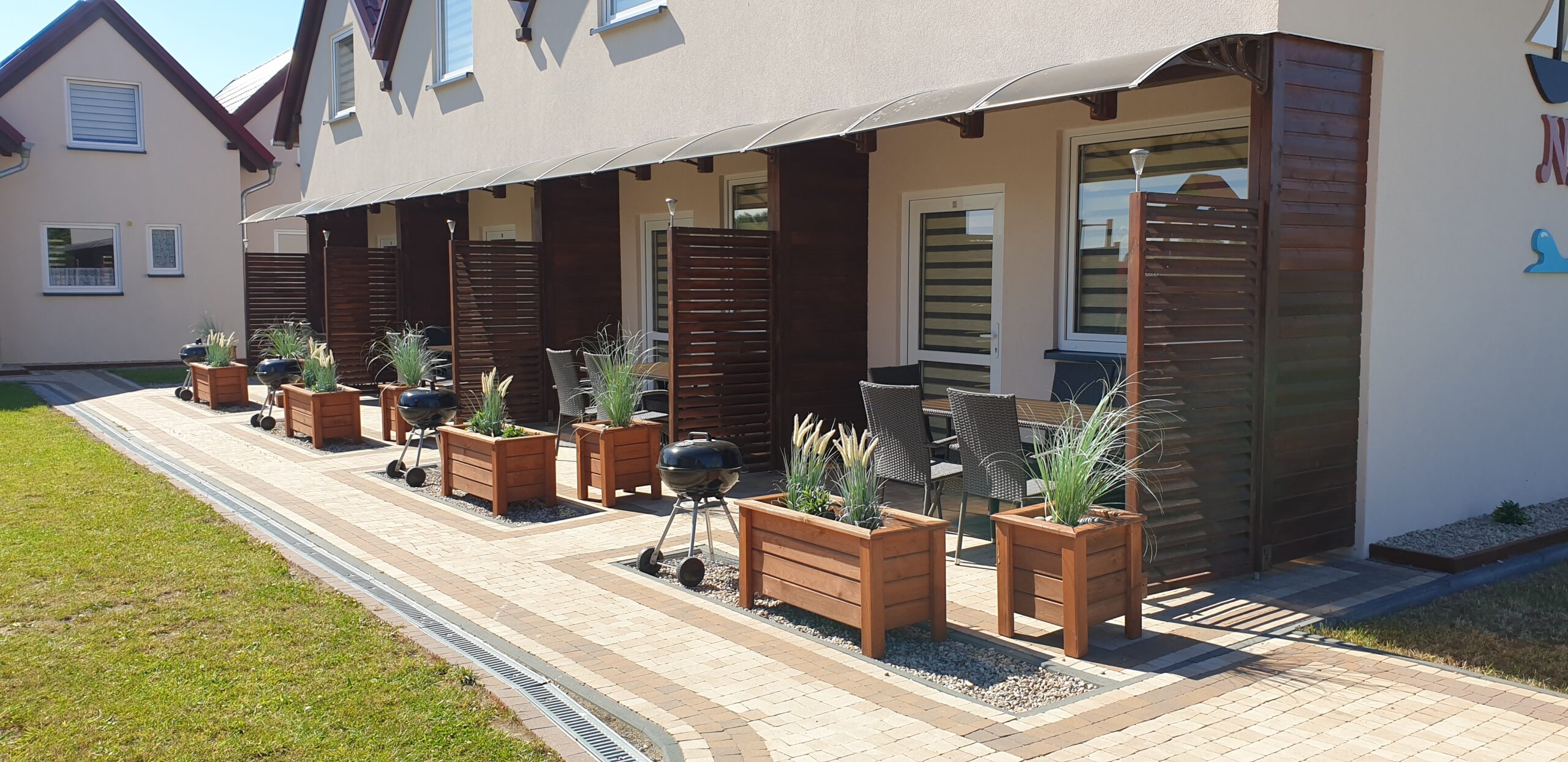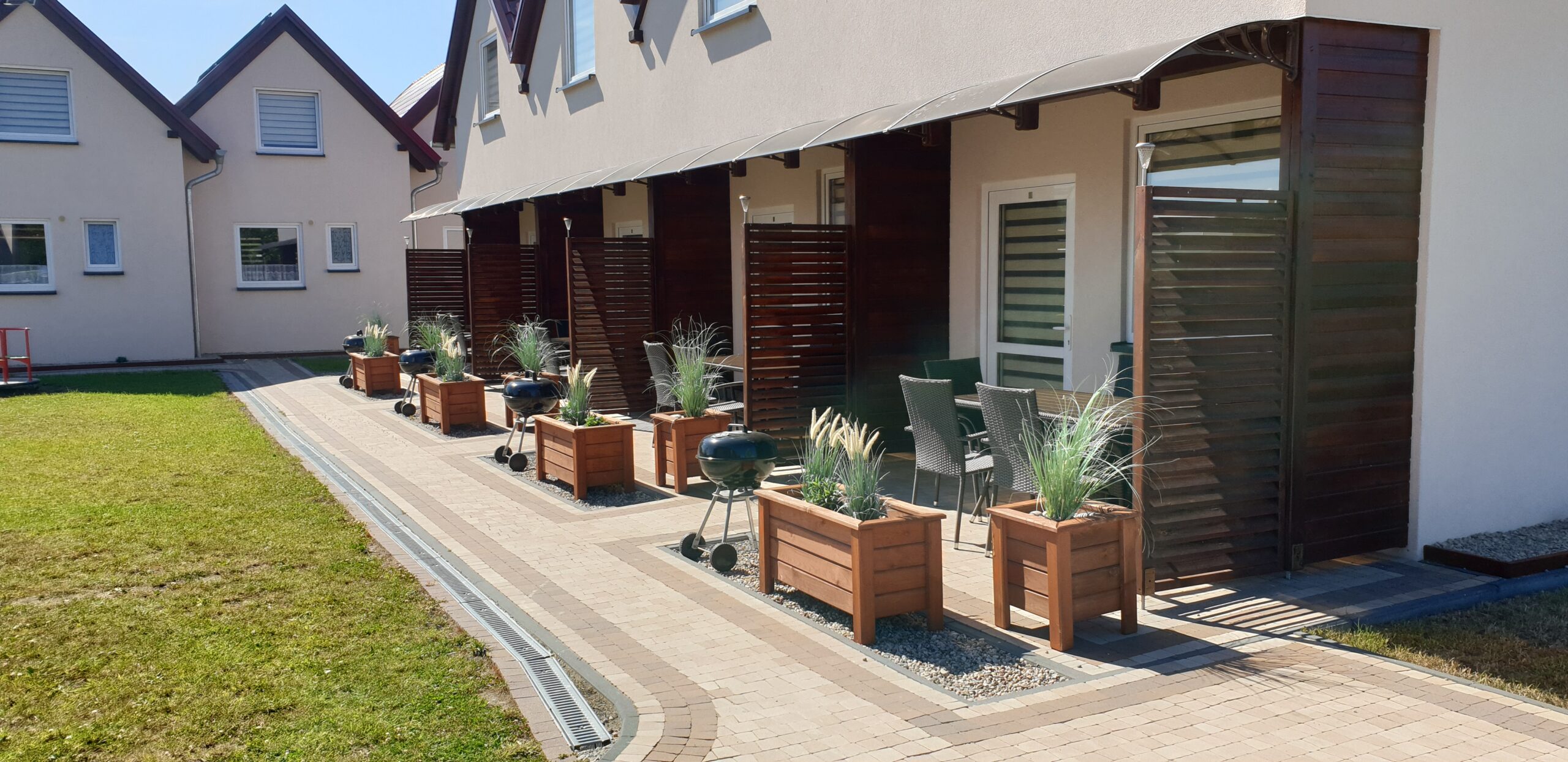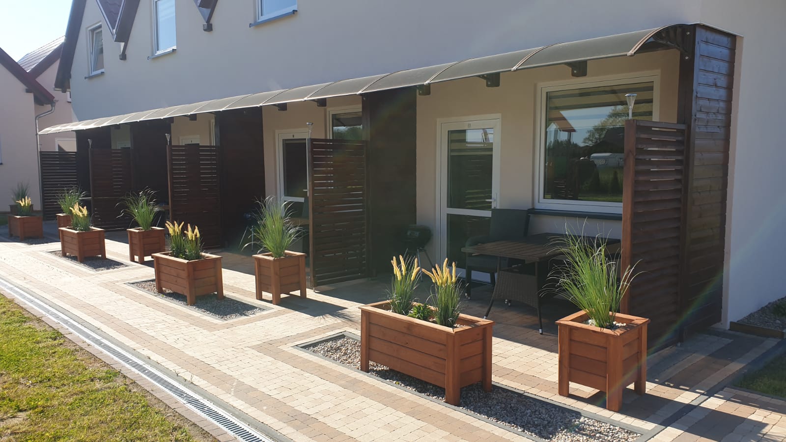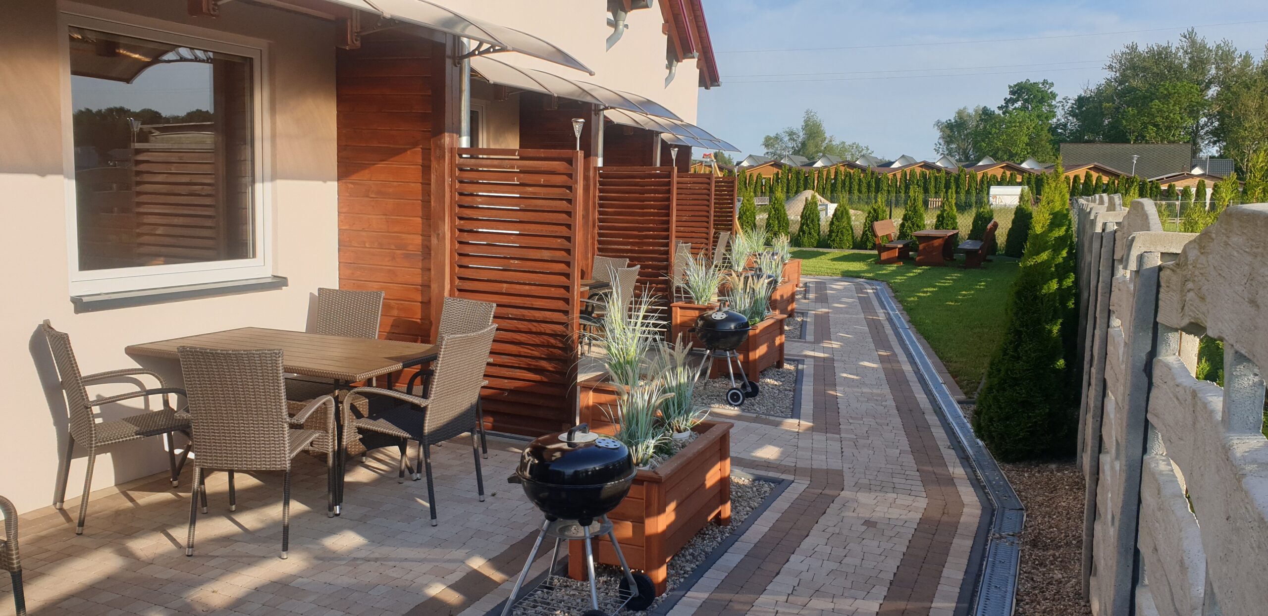 Zobacz, jak wygląda Nautica od środka i z zewnątrz. W galerii znajdziesz zdjęcia domków, zadaszonych tarasów z grillami, placu zabaw oraz okolicy — szerokiej plaży (250 m), latarni morskiej i nadmorskiego szlaku rowerowego. Kliknij zdjęcie, aby powiększyć.